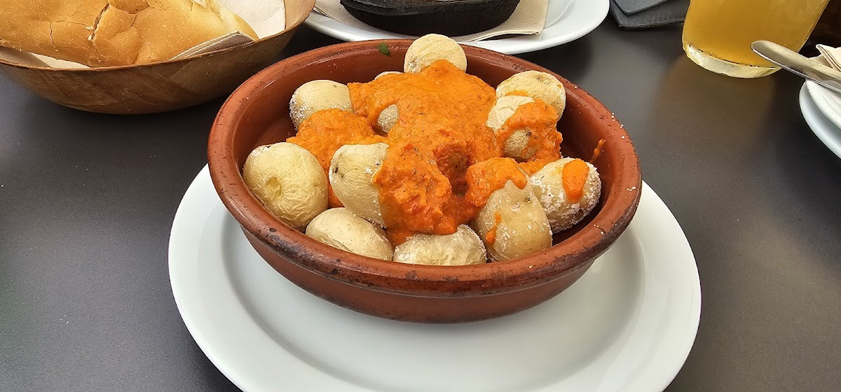 A must-try here is the Gambas in Knoblauchöl, a delicious dish of succulent shrimp cooked in fragrant garlic oil. It’s a perfect start to your meal, bringing together the rich, savory flavors of the ocean with the aromatic punch of garlic. If you’re craving a traditional Canarian snack, the Papas Arugadas (Canary potatoes) are a fantastic choice. With their signature salty crust and served with a generous helping of Ali Oli, these potatoes are the epitome of simple, rustic comfort food that captures the essence of the Canary Islands.